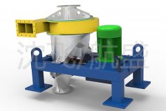 物料经给料机构进料口进入分级机后,被立式分级轮上的分配盘均匀地分配并抛入挡环,落入分级区。分级空气进入螺旋形的风腔,通过导流盘叶片以向心方向流入分级轮,满足粒度要求的细粉在分级区重力作用下分离出来。细粉与分级空气一起高速流动并进入细粉捕集系统,然后从分级空气中分离出来。粗粉落入分级机下部由带气密封的电动排料阀排出。